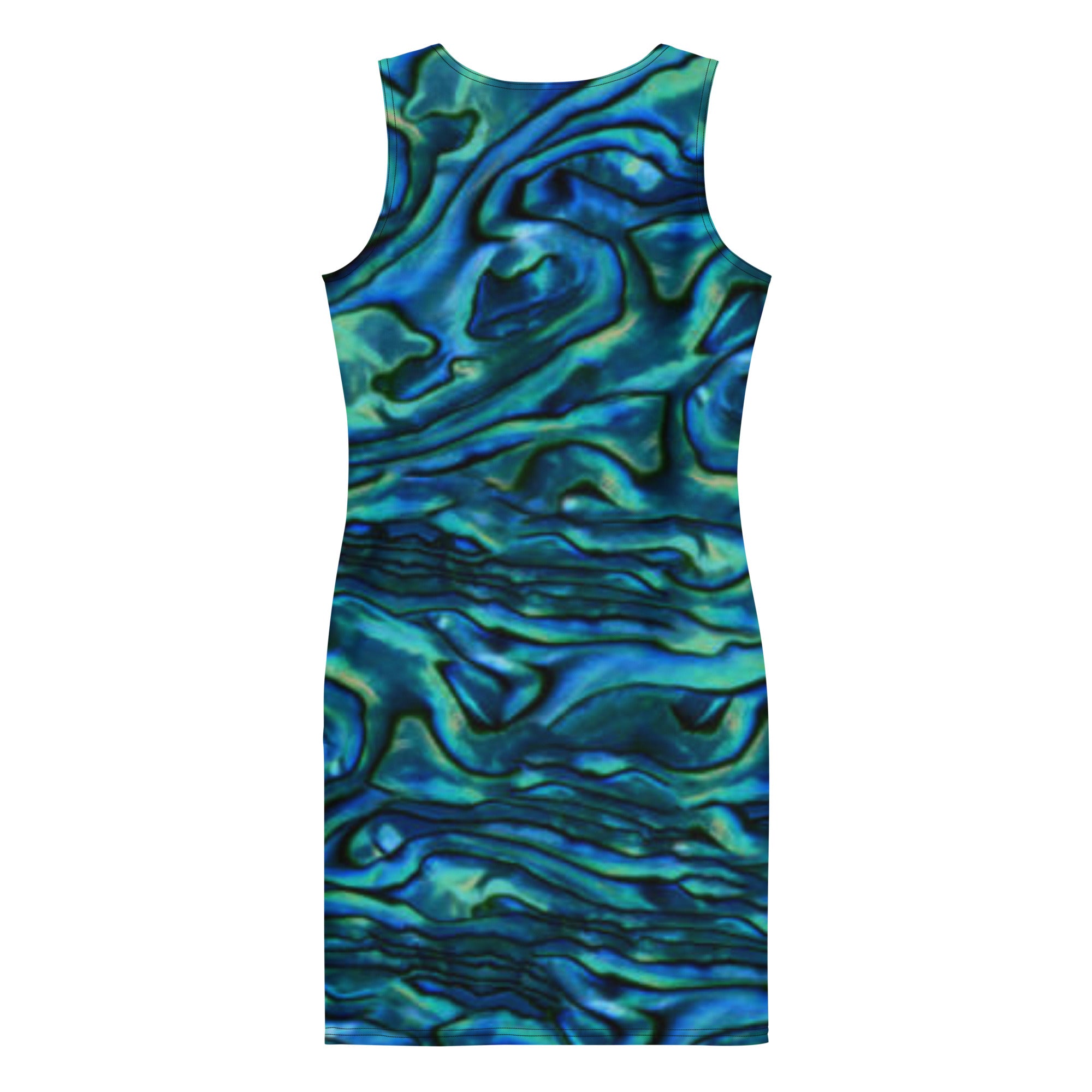 Enjoy the beautiful colors of an abalone shell while making a statement and looking fabulous in this all-over printed, fitted dress. Dress up with a bolero and heels or pair with our matching flip-flops for a more casual look.