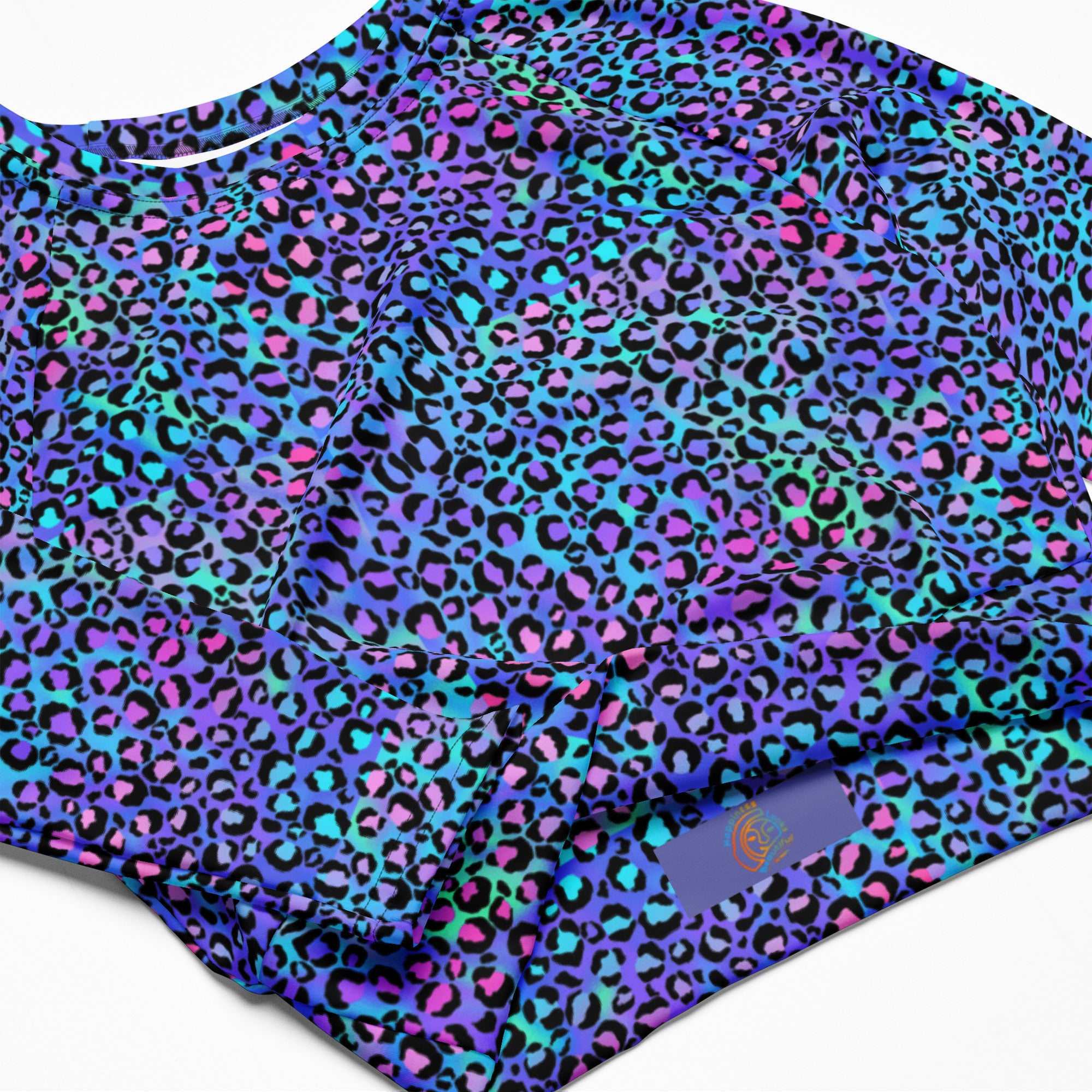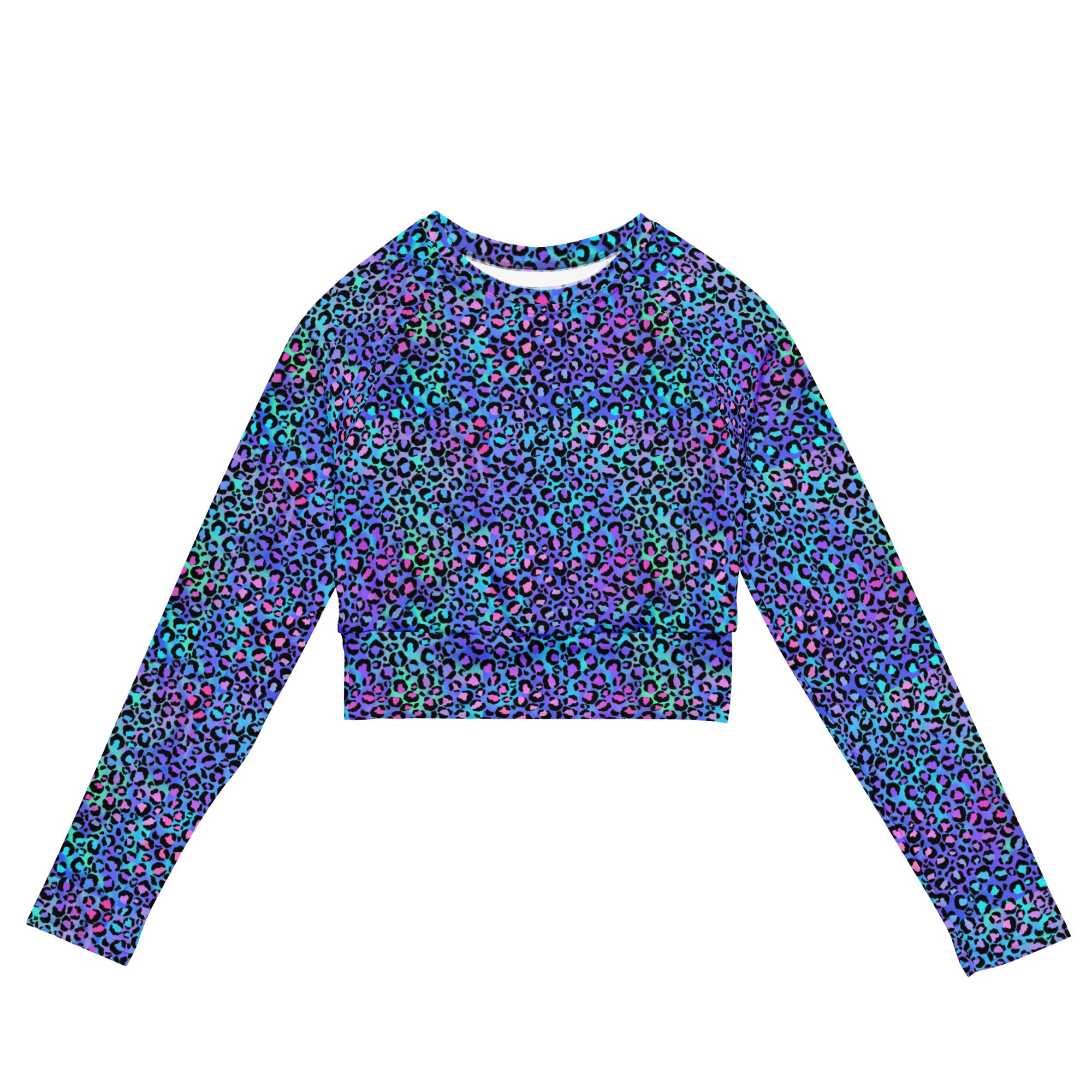 This long-sleeve crop top is made of recycled polyester and elastane, making it an eco-friendly choice for swimming, sports, or athleisure outfits. The crop top has a tear-away care label and a wide, double-layered waistline band for a comfortable fit.